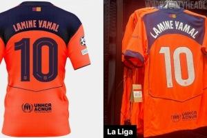 变丑了?巴萨第三球衣只能印白色字体,看起来效果差多了