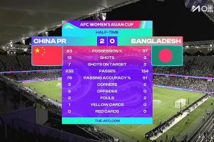 体育资讯03月03日讯 北京时间16:00,女足亚洲杯小组赛首轮,中国女足半场2-0孟加拉国女足。
