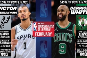 月最佳防守球员:西部文班亚马 东部德里克·怀特