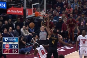 流畅丝滑!小莫布里潇洒陀螺转 单臂擒杀劈扣打停活塞!