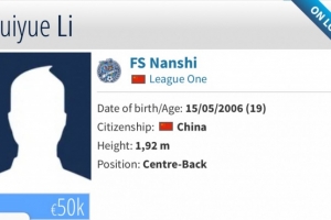 德转显示国安19岁小将李睿跃租借加盟佛山南狮,租期至12月31日