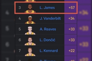 湖人球员自26年以来正负值:海斯+105领跑 詹姆斯+57第3 卢卡第5