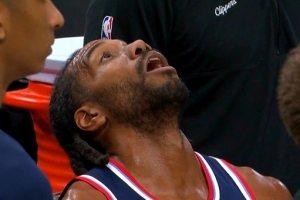 单核累坏了!小卡被打到眼睛 坐在替补席看球馆上方大屏幕回放