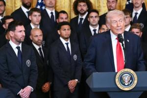 体育资讯03月06日讯 美职联冠军迈阿密国际今日在白宫拜访特朗普总统,庆祝球队2025赛季夺冠。
