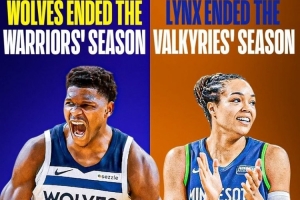 双线告捷!森林狼今年淘汰了勇士 明尼苏达山猫淘汰了金州女武神