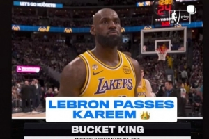 进球数超越贾巴尔独居历史第一!詹姆斯赛后转发多个庆祝海报