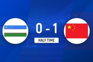 上半场比赛结束,中国女足1-0乌兹别克斯坦女足。