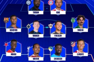 欧冠本轮周最佳阵容:凯恩、小图拉姆和拉什福德领衔,范迪克入选