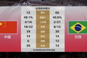 中国女篮虽开局一度落后巴西女篮9分,但众将士迅速调整,在半场结束前不仅将比分逆转,还取得两位数领先优势。下半场,巴西女篮几度反扑都被中国女篮抵挡下来。末节关键时刻,王佳琦连续进攻得分,帮助中国女篮守住胜利。