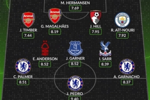 Whoscored评本轮英超最佳阵:佩德罗等蓝军3人、加布里埃尔在列