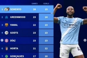 本赛季前十联赛边锋进球榜:塞梅尼奥居首,格林伍德、亚马尔前三