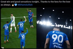 本泽马社媒庆祝新月4-0大胜:感谢球迷们一如既往的爱