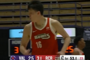 抖擞精神!杨瀚森三分线外架好炮台坚决出手 皮球空心入网