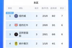 美职联积分榜:迈阿密取两连胜,3轮2胜1负,先赛暂登东区第3