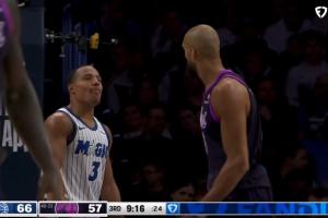 戈贝尔黄油手出界 贝恩推一把还不忘嘲讽:连喊四遍我的天哪~