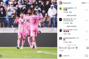 梅西赛后更新社媒动态,晒出与德保罗的赛场合照,庆祝球队取胜。