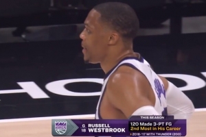 说我三分不行?威少本赛季已命中120记三分 排在生涯第二位!