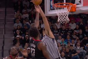 太变态了!文班右手还和卡佩拉卡着位 突然暴起左手鹰爪血帽伊森