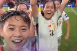 亚足联晒女足赛后庆祝视频,王霜:哈喽,我们小组第一出线啦!