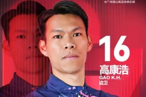 官方:深圳青年人后卫高康浩租借加盟广州蒲公英,球员将身披16号
