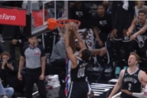摧枯拉朽!米诺特中路突击 飞身拉杆力压斯图尔特双手暴力隔扣