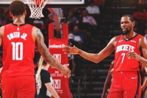 合砍52分!火箭官方发布赢球海报:封面为KD和小贾击掌瞬间