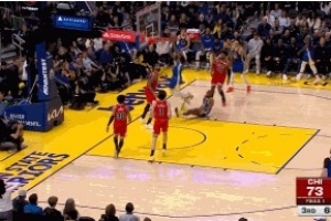 积极性拉满!小佩顿快攻中跟进补扣助勇士追分打停公牛!