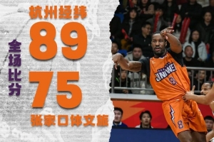 第四节比赛杭州经纬多点开花,将领先优势保持住。随着杭州经纬三分球命中率的回升,张家口体文旅的防线也不得不扩大,随之也给杭州经纬带来更大的进攻空间,队友之间的配合也更加默契。随着领先优势来到20分,杭州经纬换上全华班,郭凯伦拿下加盟杭州经纬以来的NBL正赛首分。随着比赛结束,杭州经纬在主场球迷的欢呼声中以89:75战胜张家口体文旅。