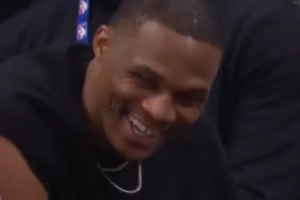 小儿科了!三球投中三分后冲威少飙垃圾话 引后者哈哈大笑