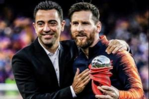 称梅西回归遭拉波尔塔否决!哈维转发与梅西合影:我只说真话