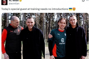 金球先生来探班,米兰官推晒舍甫琴科与莫德里奇、阿莱格里合照