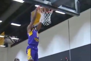 抢断队友?布朗尼接蒂耶罗传球 三分线外运一次滑翔飞扣