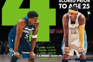 爱德华兹25岁前总得分超越安东尼 上升至历史第四&仅次于詹杜东