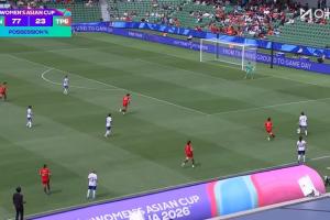 23分钟过后中国女足控球率77%,中国台北女足23%
