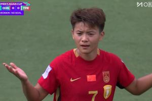 第39分钟王霜头球破门,VAR介入后判定邵子钦越位,王霜进球无效。王霜得知进球被吹后无奈摊手表示不解。