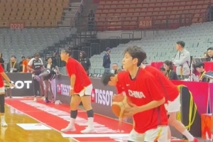 真准!今天对阵南苏丹女篮赛前 杨舒予热身底角三分12投全中!