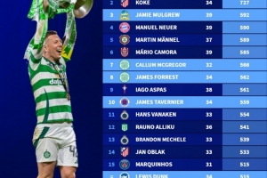现役球员单一俱乐部出场榜:阿金费耶夫817场居首,科克727场次之