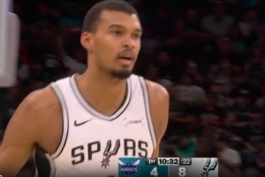 就是自信!文班亚马三分线外接球干拔 首次出手就命中!