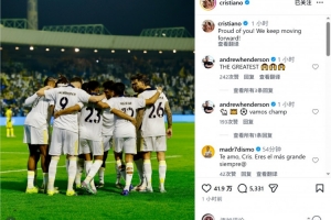 C罗因伤缺席此役,赛后他在社交媒体上晒出队友们庆祝的照片,配文:“为你们感到骄傲,我们继续前进!”