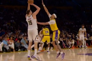 士气大振!约基奇弧顶开炮 三分命中并造海斯犯规加罚也有