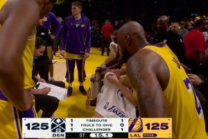 詹教练上线!湖人暂停期间 詹姆斯给队友讲解战术细节