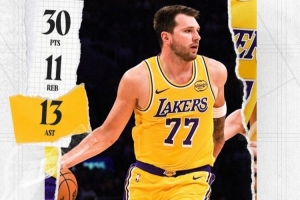 湖人官方晒东契奇数据海报:三双外加绝杀!今晚属于你!