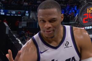 阳光开朗大男孩!威少模仿裁判比出3罚手势 随后对着镜头送上wink
