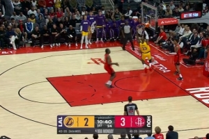 风卷残云!湖人反击2打1 詹姆斯接里夫斯回传双手飞扣