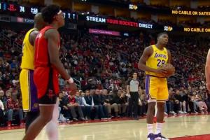 八村塁没卡位被阿门抢到篮板 遭詹姆斯批评 八村对着老詹摊手