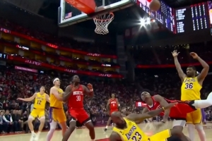 有往前上迎趋势!阿门冲筐造成詹姆斯阻挡犯规 湖人挑战失败