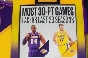 东契奇单赛季已经砍下37次30+ 队史近20个赛季仅次于科比的38次