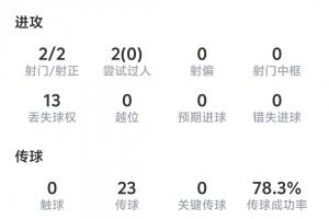 张琳艳数据:2次射门均射正+造点打入点球,评分6.2