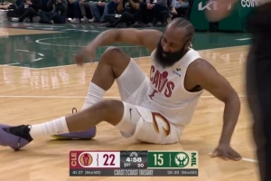 裁判就在眼前!哈登三分命中后踩到希姆斯脚上 没有加罚