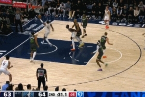 给小杨看激动了!罗威关键时刻空接隔人暴扣!开拓者领先三分!
